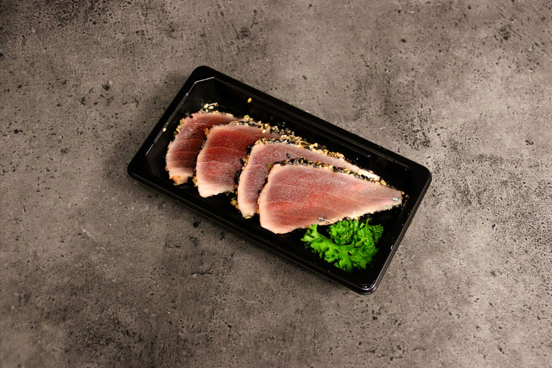 Gegrilde tonijn met zachte wasabi & Sesam zaadjes. Ronde smaak tonen met een zachte bite.